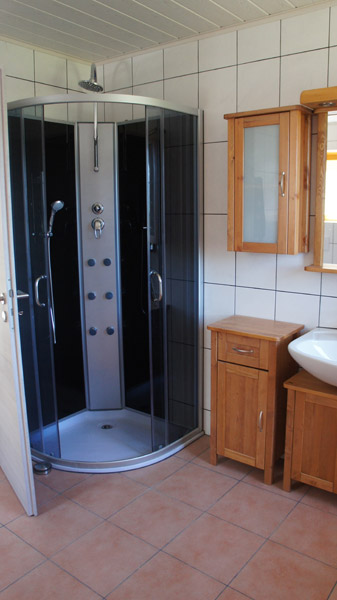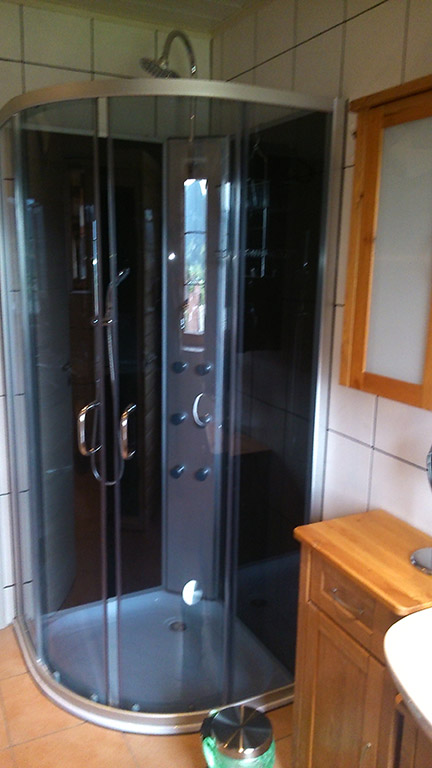 - 2 Badezimmer (eins mit Dusche / WC und Sauna im Erdgeschoss, das andere mit Dusche / WC im Erdgeschoss