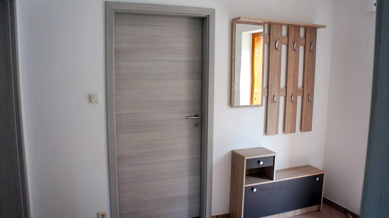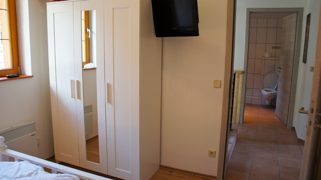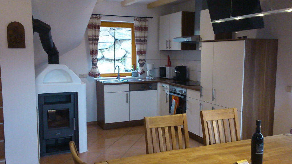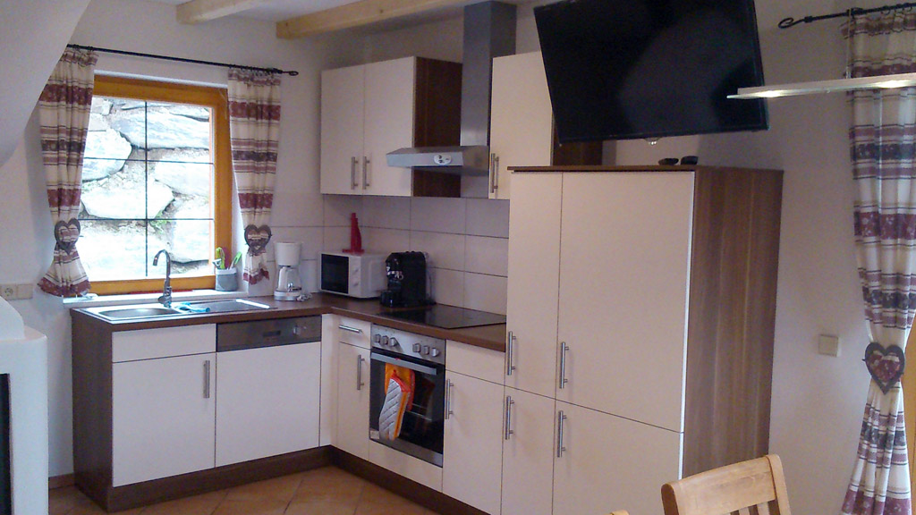 - Ausstattung der komfortablen Eckküche: Kühlschrank mit Gefrierfach, Backofen mit Ceranfeld und Dunstabzug, Wasserkocher, Spülmaschine, Kaffeemaschine, Toaster, Geschirr und Besteck