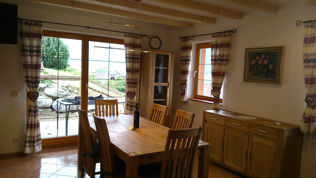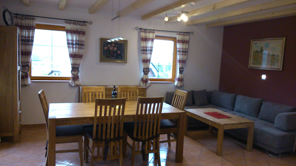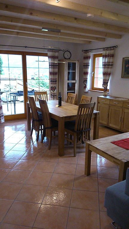 - gemütliches Wohn-Esszimmer mit großem Ecksofa, SAT-TV, Kamin und massiver Holz-Sitzgruppe