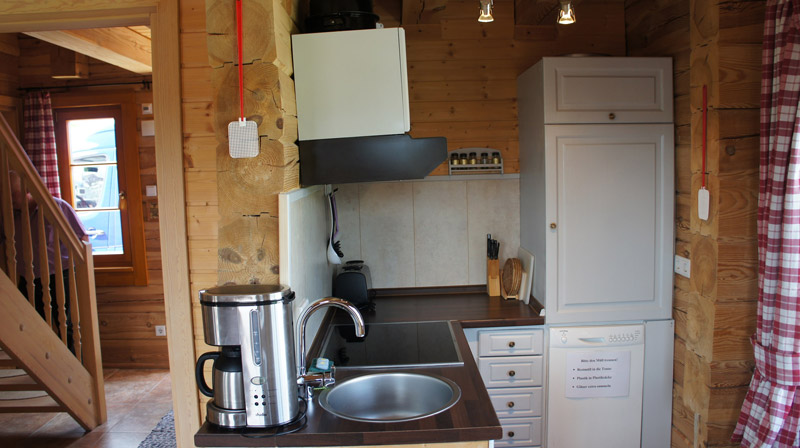 - kuscheliges kleines Wohn-Esszimmer mit Küche (Kühlschrank mit Gefrierfach, Backofen, Dunstabzugshaube, Wasserkocher, Spülmaschine, Kaffeemaschine, Toaster, komplett mit Geschirr ausgestattet), SAT-TV, Kamin, Fußbodenheizung