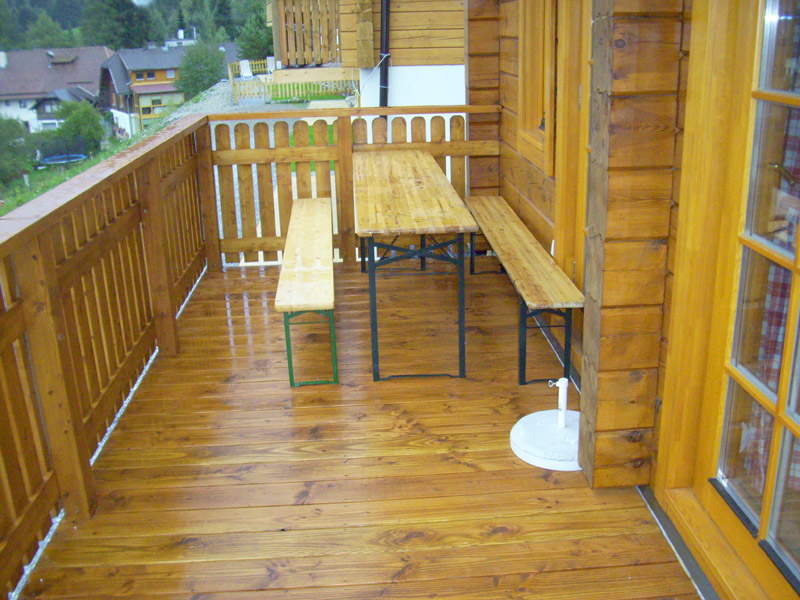 Gemütliches kleines Ferienhaus in Holzblock-Bohle mit Balkon und Holzterrasse auf Pfählen
