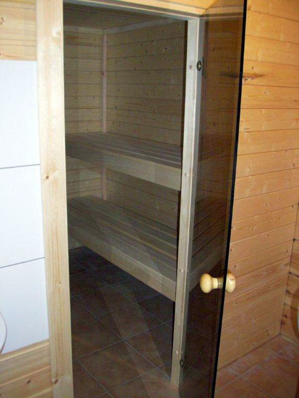 - 2 Badezimmer (eins mit Dusche / WC und Sauna im Erdgeschoss, das andere mit Dusche / WC im Obergeschoss.