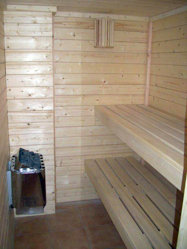 - 2 Badezimmer (eins mit Dusche / WC und Sauna im Erdgeschoss, das andere mit Dusche / WC im Obergeschoss.